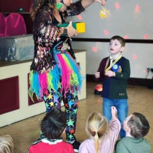 Sarah is a hugely popular, all-round entertainer with outstanding 5*reviews and a reputation for delivering fun, inclusive and stress-free parties. Her energetic party style blends interactive magic, games, mini disco, balloons, dress-up, bubbles, challenges, prizes and lots more — all carefully tailored to suit each audience!