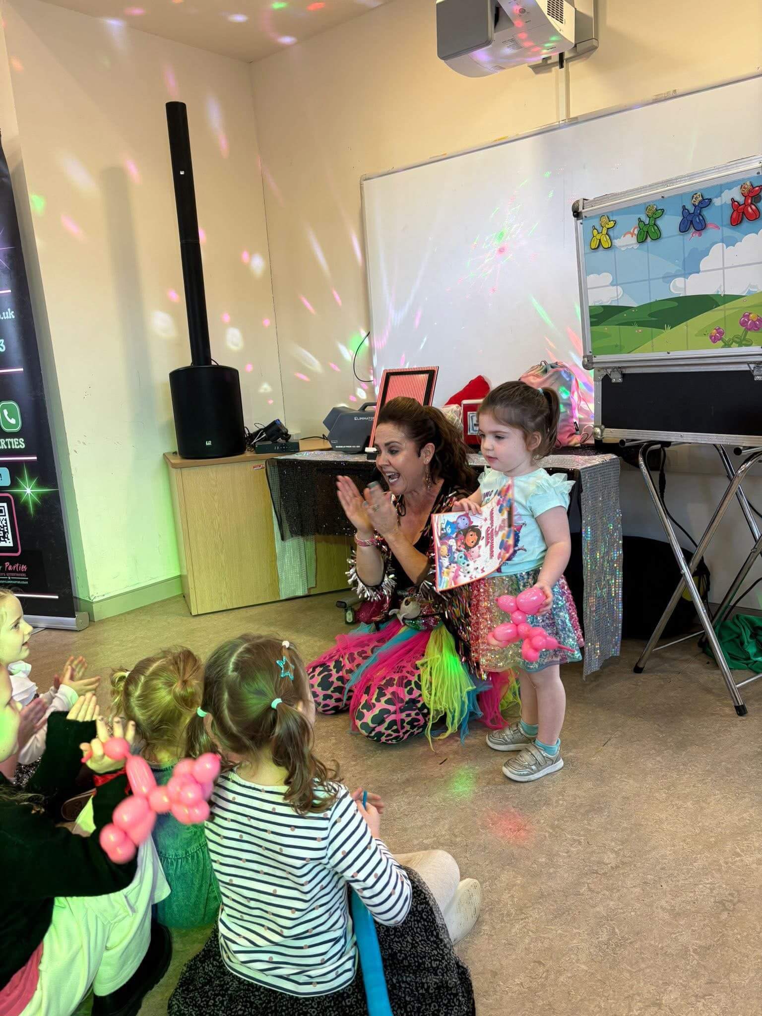 - Games, dancing, pass the parcel, prizes, disco lights, bubbles, dress up and mini disco.